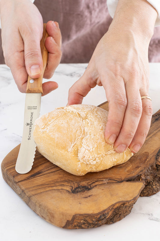 Idea regalo - Tagliere in legno di melo con coltello seghettato