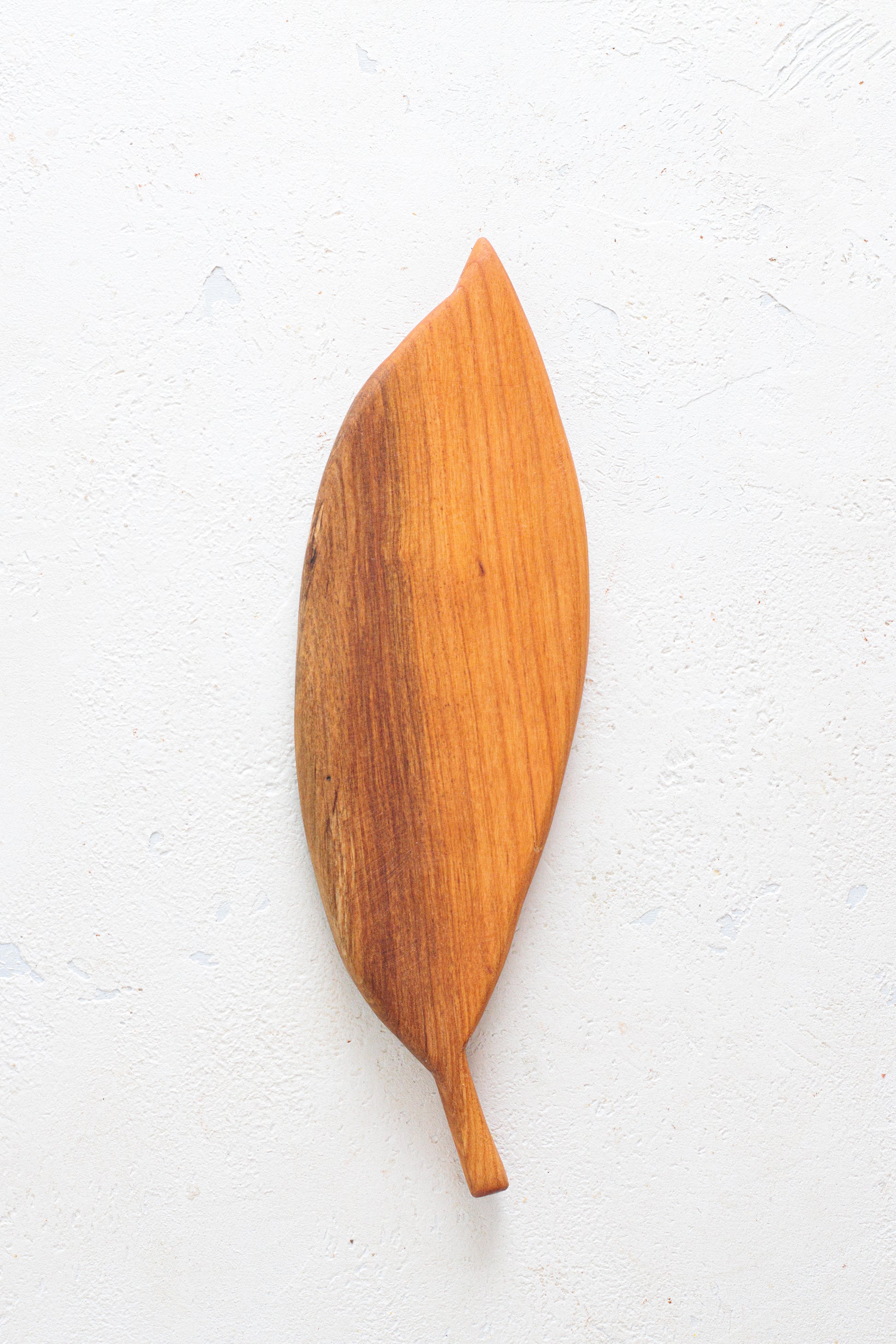 Scopri Svolazzo, il tagliere in legno di ciliegio che si distingue per la sua forma a foglia e l’originalità del design.